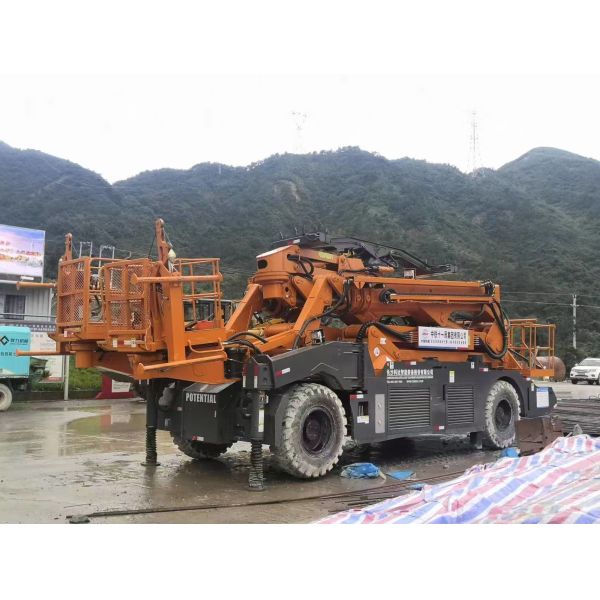 The auxiliary arm plays a crucial role in supporting the main arm during arch erection. In two-step or full-section arch erection, the auxiliary arm assists the main arm. Alternatively, in three-step construction, the main arm erects a three-step arch while the auxiliary arm simultaneously erects a two-step arch.